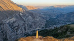 От башни открываетс бесподобный вид. Далеко внизу раскинулась огромная долина с дагестанскими сёлами Ансалта и Рахата. Казалось, что эти села прямо под нами, впереди обрыв, а села ниже башни на целый километр.