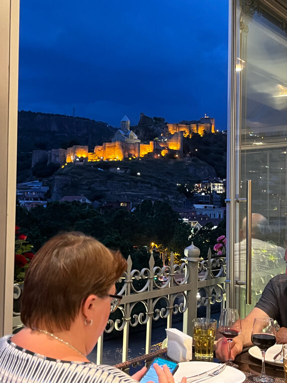 Quite a standard Georgian restaurant. We took salad and veal bowls. Beer. Everything was very tasty! But the coolest thing here is the view of the Narikala fortress. In the evening, the backlight is just a bomb.