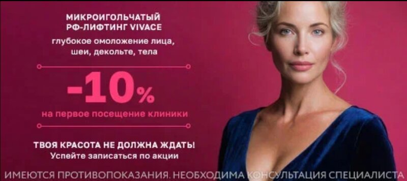 Микроигольчатый RF-лифтинг Vivace: мгновенный результат + выгода-10% Лифтинг, упругость и сияние кожи в одной процедуре. Смотрите результаты...