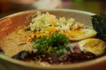 Отличный рамен со свининой: наваристый и насыщенный бульон без запаха, мягкая и сочная свинина (вроде шея), порция большая. Цене соответствует. В лапше много мяса и вкусный соус. Баклажаны хрустящие и очень вкусные. Заявленные битые огурцы плохо промаринованы. Пришлось отшлифовать маслом васаби. Было приемлемо.