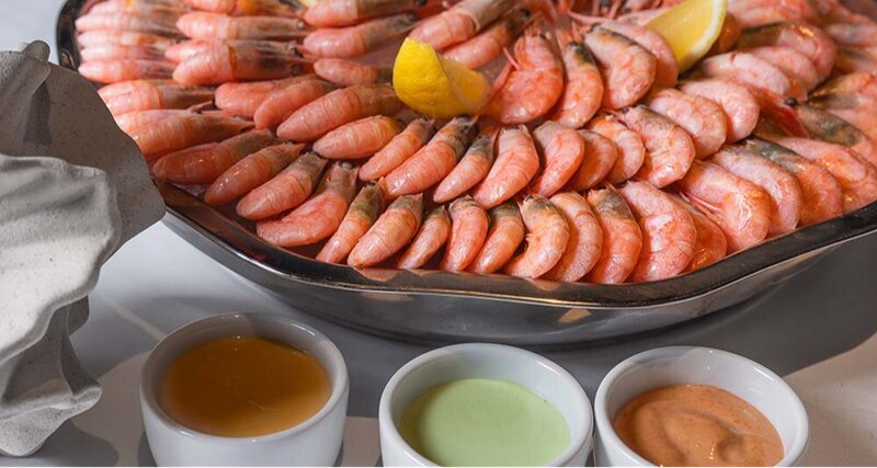 Отборные креветки, приготовленные для легкой закуски