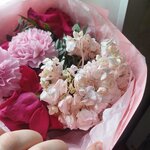 Я не знаю откуда рейтинг 5 звёзд у данного цветочного магазина... букеты делают хорошо, но сами цветы стоят крайне мало, буквально через день после покупки цветы вянут. Мне дарили 3 букета с этого магазина и все они завяли через 1 день... На фото цветам 2-ой день...