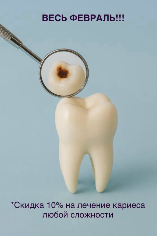 Акция: «Весь Февраль. Скидка 10% на лечение кариеса» Скидка 10% распространяется на лечение кариеса любой сложности - это включает в себя: н...