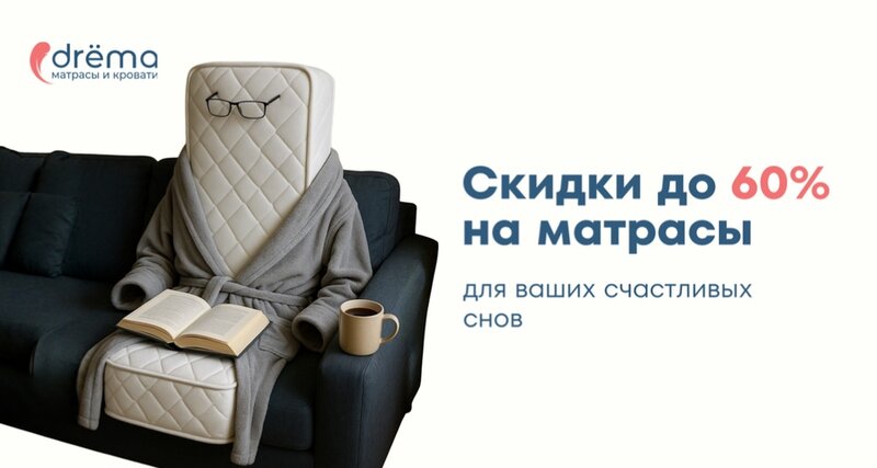 Большое комбо в drёma для самых добрых снов: при покупке кровати и матраса действует скидка 10% на комплект постельного белья. Если вы жда...