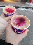 Заглянула в "Дринкит" на кофеек – давно не встречала эти кафешки, последний раз до пандемии, рада появлению вновь))! 😍 Уютный интерьер в стиле техно-лофт – прикольная кирпичная стена сразу бросилась в глаза! Выдача заказов – отдельный вид искусства: каждый стаканчик с индивидуальной подписью на столе, такая милая деталь! 👍 Жаль, что только навынос, хотелось бы подольше насладиться атмосферой. Обслуживание через приложение или планшет на стене – быстро и удобно. Ребятаа-баристы готовы помочь если есть трудности)) Взяла латте малина с сырной пенкой (напоминает взбитый творожный сыр со сливками, очень нежный). Этот латте - просто взрыв вкуса! Кислинка малины идеально сочетается со сладостью, настоящее наслаждение для сладкоежек😋 Цена абсолютно адекватная. Рекомендую всем кофеманам и сама обязательно вернусь! ❤️