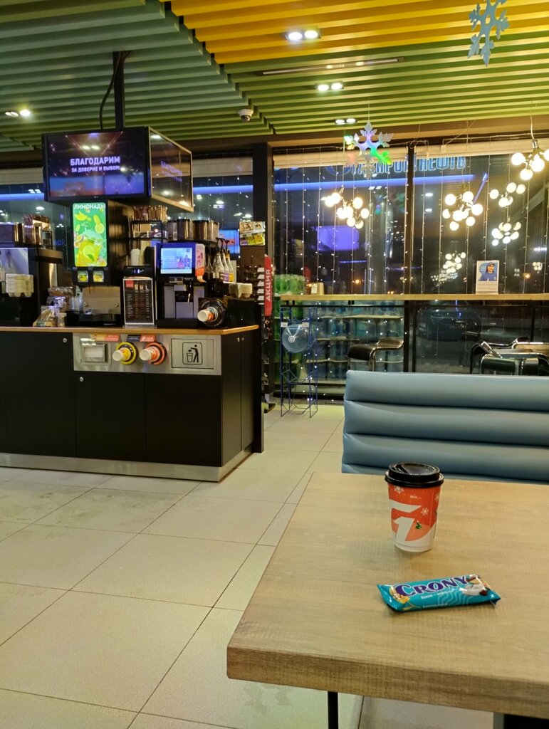 Чисто, уютно, вежливый персонал. Заправщики ненавязчивые. Туалет чистый. Есть место где можно посидеть - оперативно провести встречу. Кофе стал - не вкусный. Увы...