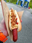 38-й километр Симферопольского шоссе и Drive Cafe Газпромнефти Это мой первый опыт написания отзыва о кафе при заправке и вот собственно почему сегодня появилось такое желание... Личный автомобиль заправляю на заправках другого нефтяного бренда, где сложилась некая традиция поглощения фирменного хот дога во время заправки авто, но вот писать об этом никогда не возникало мысли, так как поедаемый мной продукт как я сегодня понял, не вызывал каких-либо гастрономических эмоций. Сегодня же заехав сюда на автомобиле родителей, которые заправляются именно этой маркой бензина, традиционно заказал хот-дог с острой сосиской чили за 239 рублей и при мне его начали очень внимательно и аккуратно воссоеденять в единое целое и вот этот красавчик, что виден на фото, готов. 🌭🌭🌭И вот вкусив этого типичного представителя американского фастфуда я почувствовал то, что меня заставляет сейчас тыкать на клавиатуру смартфона, а именно вкус!!! Идеальный уровень остроты, когда ты её прям чувствуешь, но при этом не включается опция 'Змей Горыныч', плюс вместо стандартной горчицы - горчичный релиш с огурчиками, который я просто обожаю и много жареного лучка... М-м-м... Также стоит отметить, что длина эталонной колбаски составляет ровно 15 сантиметров и здесь все соблюдено чётко! P.S. Современные врачи в один голос твердят о вреде этого бутерброда, но черт возьми, когда пробуешь такой вариант приготовления, то как можно вообще вообразить отказ от него???
