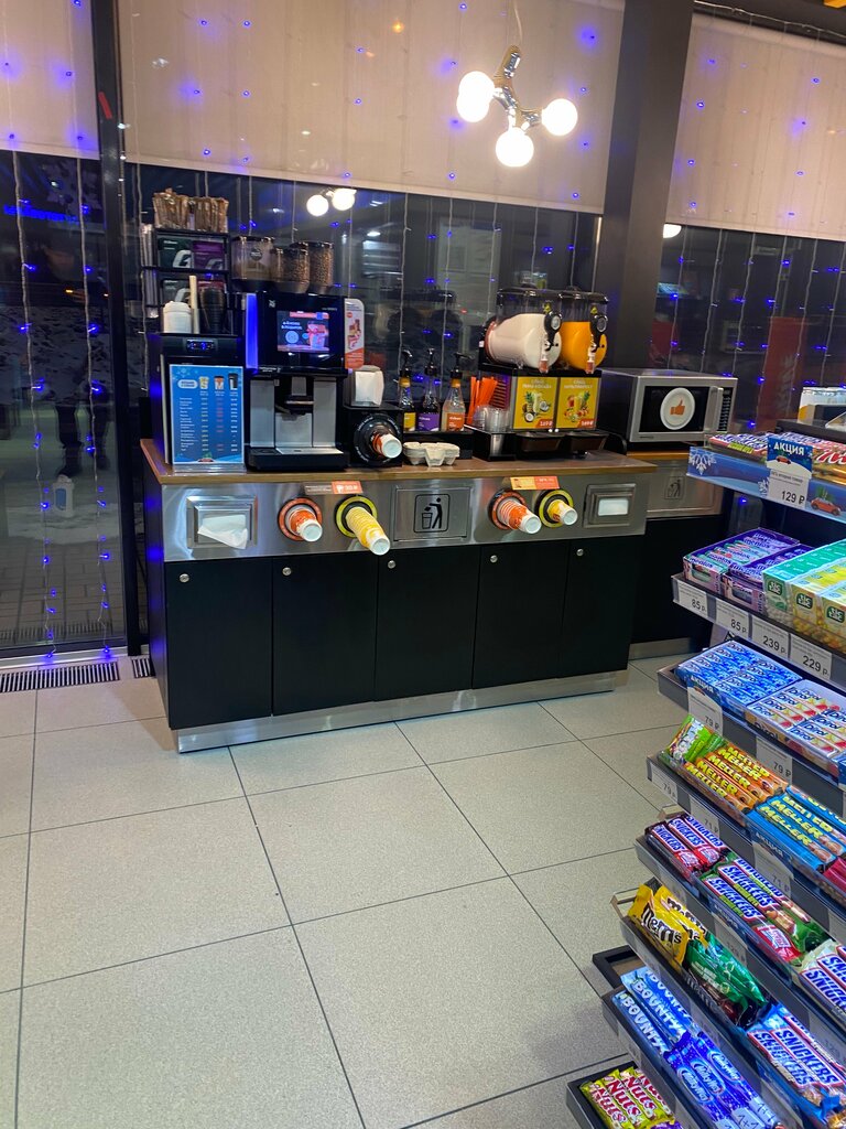 Сетевая заправка. Обслуживание хорошее. Большой выбор в магазине. Заезжал ночью, попал на пересменка, не очень удобно, пришлось ждать. Ценник как и везде на АЗС завышен сильно.