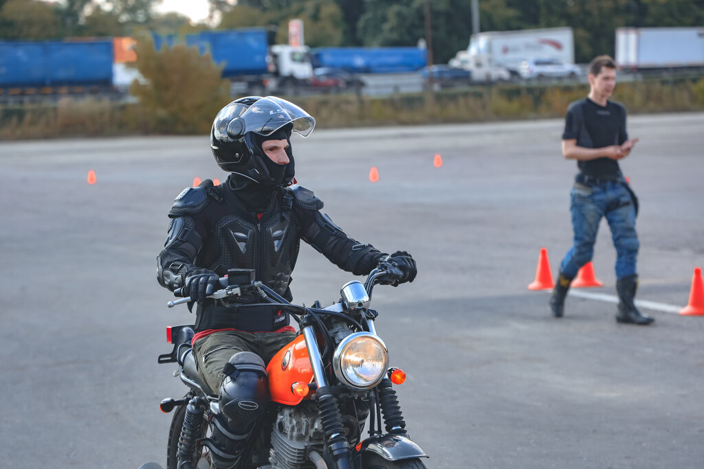 Мотошкола, которая РЕАЛЬНО учит управлять мотоциклом, а не сдавать площадку. Вернее ее тоже учат сдавать, но только после 4-5 занятия. Инструктора знают свое дело, не противоречат друг другу в обучении, отзывчивы. Мотоциклы есть как старые (на которых вы начинаете), так и относительно новые. Сдавать экзамен дали на новом cf moto 150, правда без абс. Мотик очень user friendly, тянет с низов хорошо, нейтраль хорошо ловится, хорошее сцепление. К слову, разницу в уровне подготовки и подачи материала было видно. Она огромная. Те, кто проходил экзамен вместе со мной, но учились при автошколе (ездили на холостом ходу большинство упражнений, что неправильно), как правило уходили на пересдачу. При этом пока ожидали своей очереди, с пеной у рта утверждали, что проезжать надо именно на ходостом ходу и все такое (так же легче, не надо учится чувствовать органы управления, да и сам мотоцикл). Из нашей же автошколы те, кто проехал дальше скоростного маневрирования (некоторые нет, но тут нервяк сказывался), все сдали. Из минусов: между тренерами отсутствует хорошая коммуникация. То есть они не всегда хорошо представляют, на чем вы остановились, и каждый урок это приходится выяснять заново. Раньше была крытая площадка, но сейчас ее нет (говорят, что на ремонте). В сезон происходит ротация мотоциклов между теми, кто должен отправляться на сдачу в ближайшее время. То есть сдающих много, а мотоциклов, на которых сдаёте, всего 2. Это напрягает, хотя в этом есть и плюсы, ввиду того, что учишся ездить на разных мотоциклах. В целом, рекомендую.
