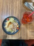 28.10.24 ходили в данное заведение. Более мерзкого заведения я не видела. Одна звезда только за приятную обстановку внутри ,довольно спокойный дизайн. По блюдам : Заказали салат с тунцом и баклажанами и салат боул с креветками. Тот ,что с тунцом и баклажанами просто вызвал отвращение . Баклажаны не приготовлены , сырые. Масло во фритюре нужно менять! Это просто мерзость по вкусу ! Сколько ему ? Пол года? Тунец хороший ,свежий. Баклажаны не съела. Салат с креветками неплохой , на 4. Горячее : язык ягненка с пюре и кальмар на гриле. Язык ягнёнка не смогла съесть, резиновый. Пюре окей, обычное. Кальмар так же приготовлен ,резиновый. Но неплохо на слабую 4. Блины ! Не думала ,что можно испортить блины ,но вы смогли 🥲 Вы по основному меню продаёте блины которые были приготовлены с утра для выдачи ! Это сказала официантка без доли стыда. Неужели не пожарить их перед подачей? Заранее сделать тесто -окей , но подавать старые блины. Более позорного позора я не видела. Сыр камамбер по вкусу так же мерзко из-за того ,что готовят его в старом фритюрном масле. Чай эрл грей ,реально очень крепкий пить невозможно. Из хорошего : вкусная безалкогольная пиноколада , глинтвейн. Счёт вышел на 3900₽. Но по вкусу и впечатлениям, всё это не стоит больше 1500₽. Официантки уставшие ,неприветливые , по поводу блюд не спрашивают. Общее впечатление - ужасное. Настроение испорчено. Более к вам не приду. В Вологде есть места ,где намного вкуснее.