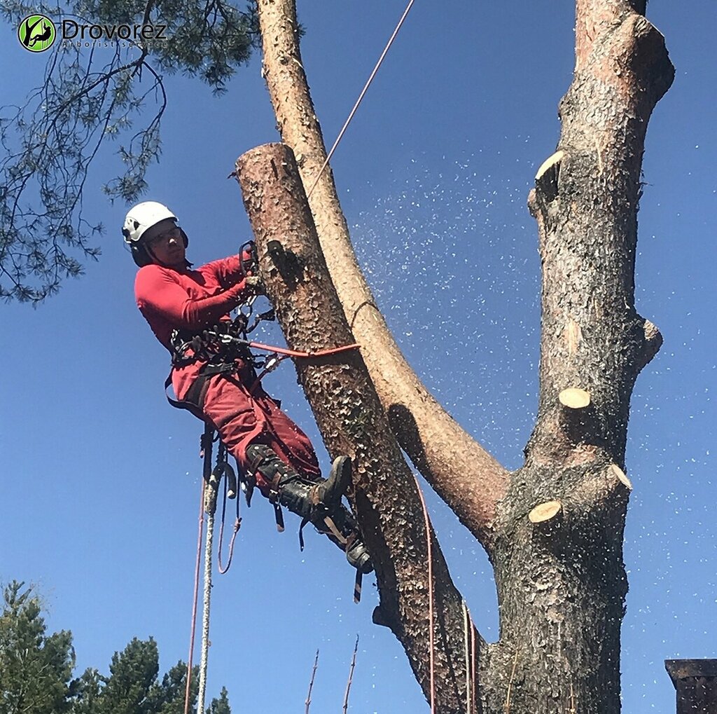 Удаление дерева по частям с подвешиванием и плавным спуском частей (Диаметр от 30 до 50 см)