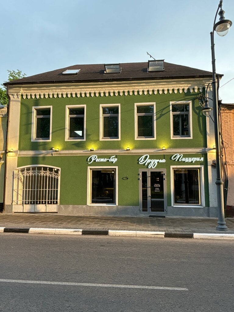 Прекрасно пообедали 19.08.25 в ресто-баре «Друзья». Качество пищи на высшем уровне. Борщ был подан горячим, с мягким, разваристым мясом, а на отдельном блюде - сметана в чашечке (и не мало!), ломтики чеснока, аккуратные палочки зеленого лука, две пампушки, и - неожиданно - тонко нарезанные «листики» мягкого и очень вкусного сала!! Великолепная подача! А сам борщ - выше всяких похвал! А пицца с сыром и грушей включала в себя и кедровые орешки, и была приготовлена в самый раз: и не жесткая, и не мягкая, из тонкого теста, но не пережаренного, и той температуры, которая ничего, кроме удовольствия, вызвать не может… Персонал - на высоте! Официант Арина профессионально и точно описывала блюда, изящно и умело приносила их на наш столик. Хочу отметить, что заведение расположилось в старом здании, и интерьер в темно-зеленых тонах с неброским рисунком на стенах, и белым потолком в сводах Монье (точно такие же своды, например, в здании Парламента Венгрии в Будапеште), зеленый фасад здания и даже ресторанная посуда выдержаны в одной цветовой гамме, что совершенно точно свидетельствует о наличии архитектурно-художественного вкуса устроителей этого заведения. Туалетная комната - чистая, с работающим оборудованием, укомплектованная всем необходимым, с щеточкой для обуви и кремом для рук! Мы остались просто в восхищении! Искренне желаем здоровья и успехов!