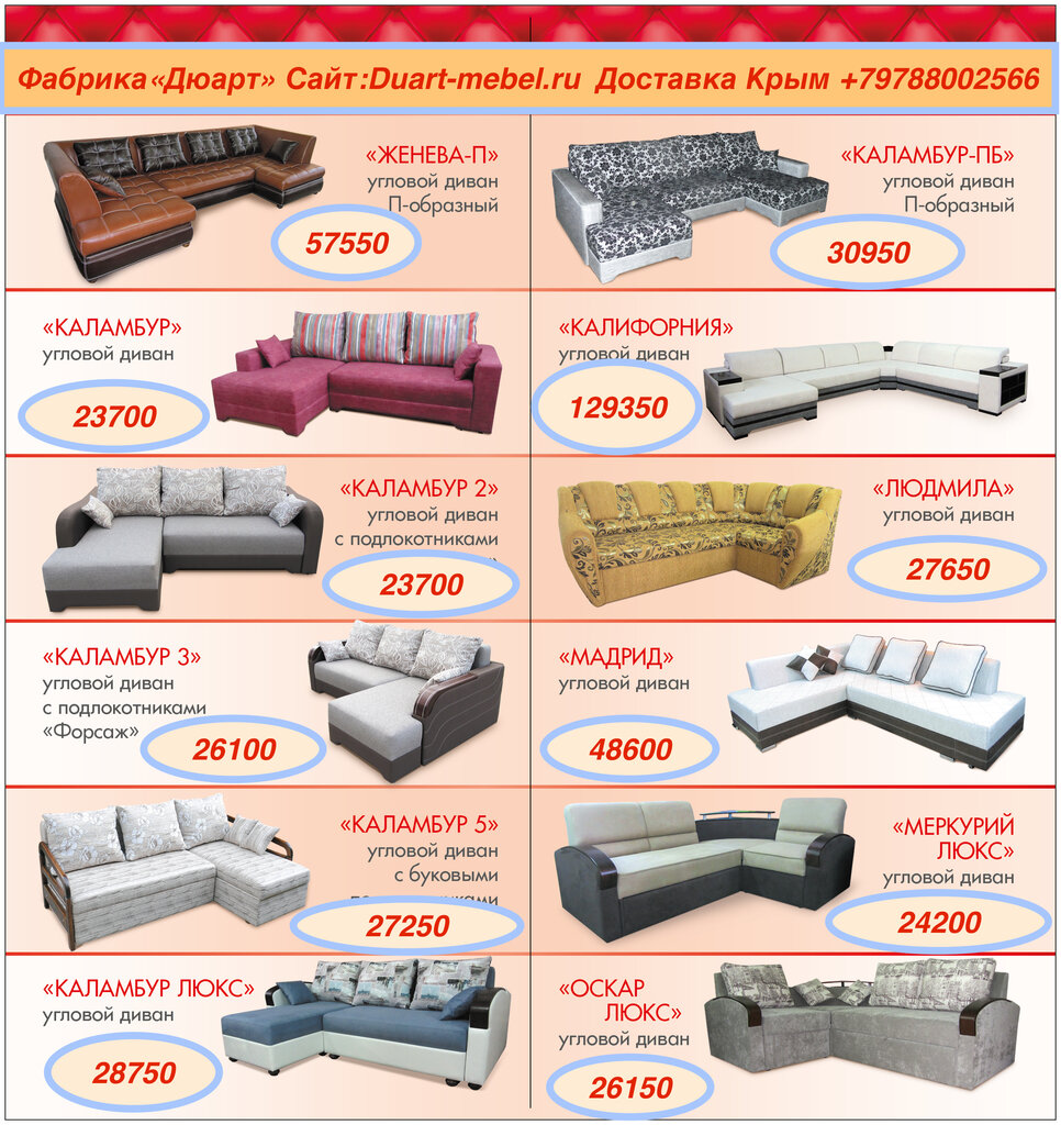 Покупала у них диван.,потом кровать. Очень понравились цены . К качеству претензий пока нет. Обслуживание вежливое. доставка без срывов сроков.