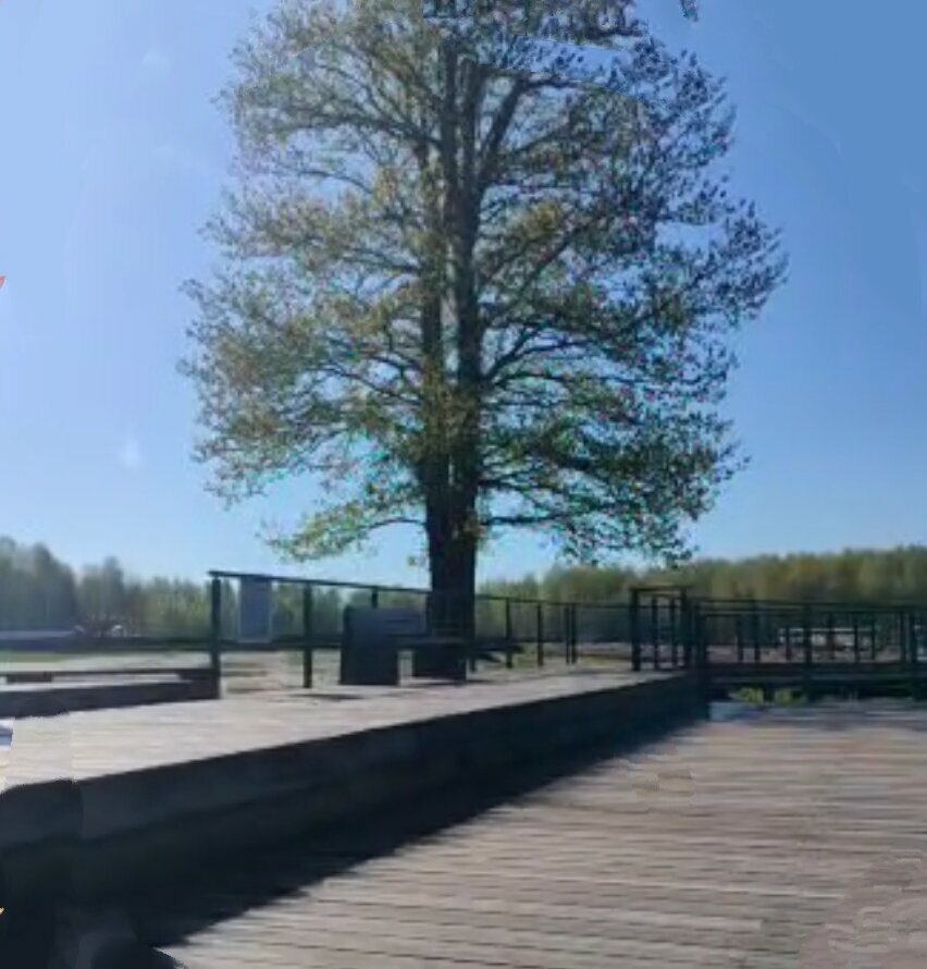 Исторический дуб, судя по теням на старых космоснимках сохранился со времён, располагавшегося на месте будущего пруда, леса. Неизвестно, как много ему было лет до того, но как минимум он уже пережил строительство пруда, перестройку, дефолт 98-го и реновацию парка в 2023 г. Величаво и одиноко стоит на острие суши вдающейся в акваторию пруда, хороший ориентир и просто природный объект с историей.