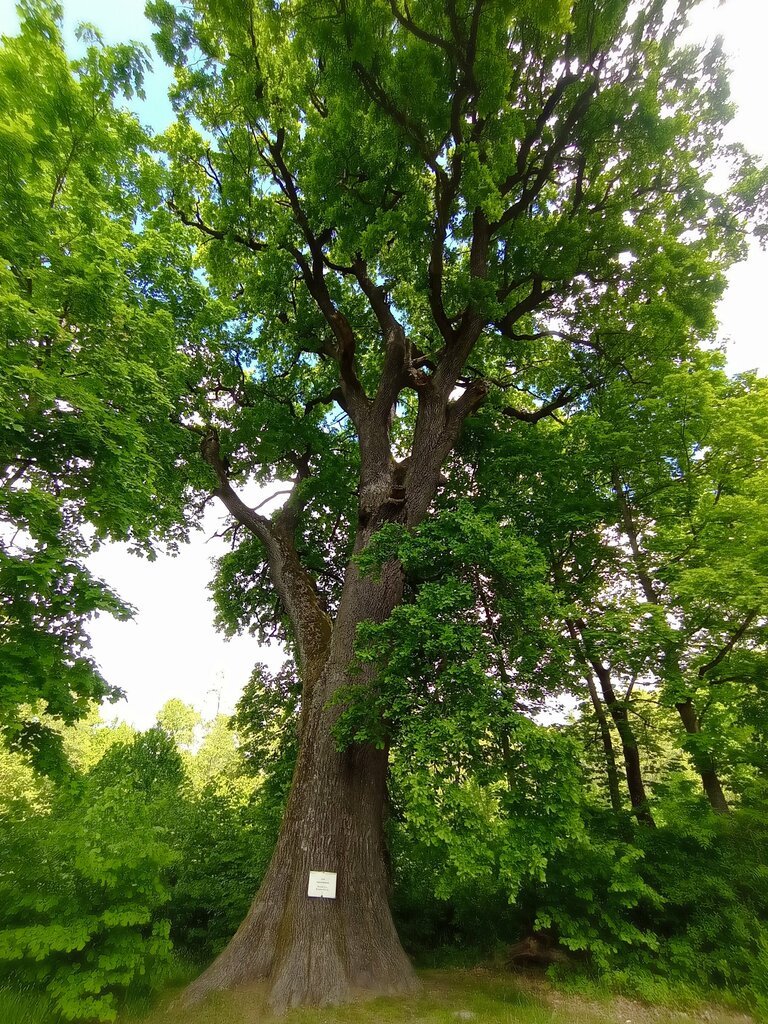 The oak of Princess Bona Sforza is about 450 years old. There is a confirmation plaque on the oak tree. It looks impressive.