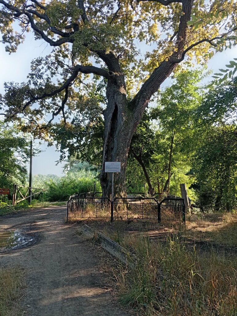 Великий дуб титан, ходят рассказы, что по нему ударила молния и он загорелся, но пожар был успешно потушен и дерево стоит всё также