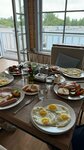 Эко отель. Загородный отдых со всеми прелестями природы и при этом со всеми удобствами цивилизации. Очень вкусные завтраки, обеды и ужины (в хорошую погоду на улице). Шведский стол небольшой, но всегда уходили сытые и довольные. Особенно покорили котлеты из судака. Брали баню, приятный домик чисто для нас на 2 часа, протоплена хорошо, внутри всё необходимое. Номер брали с мини садом. Чисто, комфортно, при первой же просьбе нам давали всё необходимое. Тёплые полы вообще чудо, вечером приятно после терассы. Несмотря на заполненность шума не было. Соседи не беспокоили. На один из вечеров брали гриль, к нему идёт набор тарелок, нож с доской, фужеры, приборы... в общем все для крутой сервировки. В отеле много табличек с объяснениями. Поэтому чувствовали себя ждаными гостями.