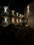 Эко отель сильно переоценён, особенно номерной фонд.Комнаты по 16-18 м2.,матрас очень неудобен, пружины впиваются в тело, спать с открытым окном невозможно - шум от порта, в номере не уходит вода из раковины. Территория комплекса маленькая. За пределами территории пойти и заняться нечем. Сильно разочарован отменой Гриль ужина, собственно, из-за этого я забронировал в этом отеле 2 номера по невозвратному тарифу, хотя за сутки до прибытия и бронирования я специально позвонил на Reception для подвеждения Гриль ужина, и мне четко было сказано, что Гриль ужин состоится в любую погоду,а стол будет накрыт под навесом. В итоге, ужин был заменен на столовский шведский стол. На выбор было предложено: фаршированный перец и ужасного вида курица с гарниром. После ужина в беседке можно было посмотреть фильм на экране с дополнительными услугами. Ошеломило, нарезанный арбуз за 290 руб/100 грамм!!! Грусть и печаль. На Reception не оказалось книги жалоб и предложений.
