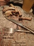 Еда очень простая, даже нету fish and chips, хотя в пабах это всегда есть. Выбор пива хороший, но половины сортов нету, официантка обслуживала на 2 из 5.