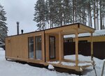 Приятный офис в собственном модуле, профессиональный персонал, все расскажут, но к сожалению не все покажут... нет шоурума с банями. Все же хотелось вживую увидеть что покупаешь) пришлось заказывать так. Привезли модули на двух манипуляторах. В общем завезли модули на участок, поражаюсь профессионализму манипуляторщиков и тех кто внизу помогает, как они так точно позиционируют). Модули установили, связали между собой, провели герметизацию и утепление швов. С работой справились за 2 дня, я приехал на второй день и только принимал работу. В первый же день обнаружил в процессе доставки небольшую вмятину на углу фасада, говорить ничего не стал, дефект незначительный. Но ребята молодцы на второй день привезли новый элемент и заменили полностью, даже просить не пришлось. Внешне баня красивая, все сделано качественно, на приемку ездил с другом строителем, все проверили, нареканий не обнаружили. О долговечности пока судить рано, лет через 10 обновлю отзыв) но в целом пока доволен, за счет грамотной герметизации и теплой погоды, при первой топке банька нагрелась моментально. Спасибо ребятам еще раз, спасибо Мише что порекомендовал вас)