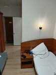 Гостиница расположена в неприглядном здании, своей парковки не увидел, просто есть площадка рядом. Сейфа в номере тоже нет, хотя, в рекламе указан. Звонил насчет номера для двоих, по итогу был номер с одной односпальной кроватью, благо более менее широкая. Чай и шампунь с гелем положили на 1 человека. Но, деваться некуда, все ближайшие приличные гостиницы заняты Внутри более-менее, номера чистые, мебель простенькая, но не убитая. Телевизор почему то часть каналов показывает в черно-белом варианте и расположен высоковато, из кресла смотреть неудобно. Завтрак есть, за отдельную плату )) Кофе платный и только 3 в одном. Кстати номер такой для одного стоит 1600, а для двоих 2000 , где логика? Курить на улице, при этом надо придерживать дверь, чтобы не закрылась на магнитный замок, иначе, придется звонить в домофон- тревожить других постояльцев. А с учетом того, что рядом со входом расположен К&Б и райончик мягко говоря не интеллигентный, курить не очень комфортно. у К&Б уже с утра "синявки роем тусуются и орут. Небольшой плюс- рядом небольшой сосновый бор, можно погулять. Вообщем , подойдет командировочным или парочкам для уединения и то, если больше нет мест