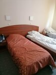 Сама гостиница неплохая, сделан свежий ремонт, но заселились в номер одноместный, куда впихнули ещё одну кровать и он стал двухместный, соответственно стул один, стакан один и даже ножное полотенце Выдали одно на двоих
