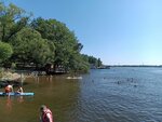 Грязно, не ухожено. Бесплатная зона отдыха - этим все объясняется, видимо. Урн мало, кафе страшненькое. Гор мусора нет, но бычки, банки, шелуха от семечек ждут ваши ножки на входе в воду. Вокруг то ли стройка, то ли развалины, куча строительного мусора. Туалета нет, переодевалок нет. Место в лесу, откуда начинается туалет можно узнать визуально и по запаху. Парковка на дороге в лесу, вокруг все заросло борщевиком. Ощущение уныния от такого месте, если честно. Пляж близок к дикому, но люди постарались. Да, и напротив прокат и тренировки водного транспорта. Гоняют круто, но место купания никак не огорожено, страшно.