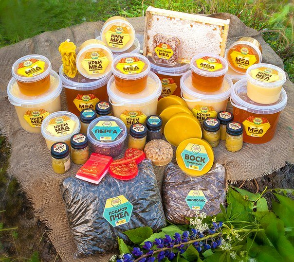 Очень вкусный мед, и ещё много всего.свечи восковые, крем косметический, всем советую!!!