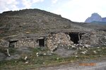 Аул располагался выше дороги и вниз от нее. Внизу почти ничего не осталось, а вверх от дороги кое-где еще окна деревяные сохранились. Вверх от дороги очень круто и скользко. Можно проехать вперед 100 метров и резко влево вверх повернуть. Дорога идет в горы и, заехав достаточно высоко, можно посмотреть на руины сверху. Кстати, там вверху то же развалины есть. Мы на Кашкае метров на 200 подняться смогли, а дальше не рискнули, хотя дорога есть.