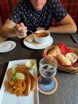 Зашли чисто по интуиции 🙂 И не прогадали Интерьер как во всех пивных ресторанах Меню небольшое, но хочется попробовать все 😅 Я заказала: Корюшку в темпуре (стоила она 350₽ я думала принесут три рыбки, но нет ее было достаточно), ржаные гренки (хлеб огонь), и филе судака (нежнейшее филе в сливочном соусе, пюре мое почтение) …. И пиво 🍺 (цель перепробовать весь саур🤣 )раз уж не за рулем Перфекто все 😚 Официант настолько умеет круто общаться с гостями что ему чаевые хочется оставить еще до того как поел 😅 Рекомендасьен 100%