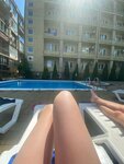 Хорошая гостиница, уютные номера, тёплый бассейн, очень тихое спокойное место, очень располагает к отдыху с детьми, до моря идти не больше пяти минут пешком, наш номер распологался на противоположной стороне от дороги, вид с балкона был во двор на бассейн, при открытой двери балкона нет никаких посторонних запахов шашлыков машлыков и вяленной рыбы, столовые и кафе на противоположной стороне дороги, очень удобно, рекомендую всем кого интересует отдых в тишине и спокойствии. В номере 3хмесном 2 кровати, одна двух спальная вторая односпальная, это намного удобней чем одна кровать и диванчик на котором не выспаться, в номере есть кондиционер, холодильник и чайник, что тоже очень очень удобно, номера просторные комфортные, персонал гостиницы это хорошие, добрые и приветливые люди.