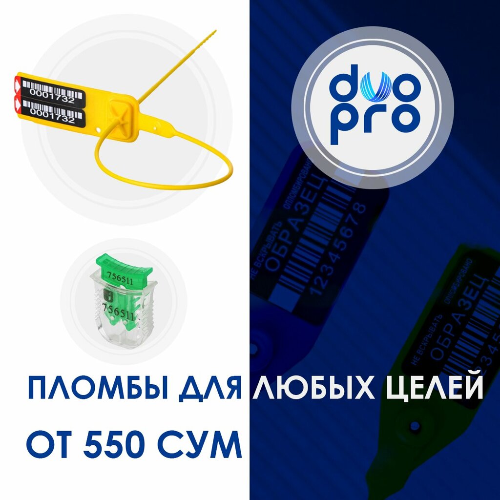 Продажа охранных пломб различного вида по всему Узбекистану. У нас в наличии различные виды качественных пластиковых пломб: - Пломбы «Дракон» (с плоским хвостом) - Пломбы «Универсал» (длинной 30-50 см) - Премиум пломбы Российского производства