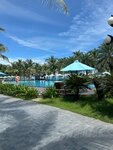 Nice hotel, we liked everything. We lived in a villa overlooking the garden - spacious, large, 2 toilets, a shower in the room and outside, a bathtub outside, there is a kitchenette, a large refrigerator, a microwave. The territory is large, but everything is close enough, there is a lot of greenery that creates shade, it was comfortable to move, you can use electric cars. We mostly went to the restaurant on the beach for breakfast, there were fewer people there, the choice of dishes was large, and some things changed every other day. There were always eggs, fish, meat, and various pastries. The beach is clean, sandy, and the water is definitely cleaner than in Nha Trang. There are not enough sun beds, but we always found a free one. There are 2 large pools, one is in the garden and there is shade under palm trees during the day. We only paid for breakfast, there are two restaurants where you can order lunch or dinner - the prices are of course too high, but it was convenient that you didn't have to pay immediately, and the bill was recorded on the room, you can pay at check-out. There were difficulties with exchanging debts at the hotel, for some reason they constantly had no money. There is a free shuttle service to Nha Trang 2 times a day by appointment. When we exchanged dollars for local dong, we already went to a nearby village for dinner, just 800 meters across the street, and there is a supermarket and several restaurants where you can inexpensively order any seafood and local cuisine. As such, there is no animation in the hotel, there are football, basketball, volleyball, tennis, golf equipment freely available, take it and play. A decent fitness center. In general, entertain yourself. A day later, groups of Vietnamese were entertained, who held a corporate team building on the beach.