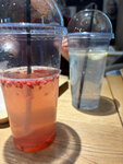 Заходили на поздний завтрак в 15-16 часов дня, слава богу они у них весь день. Брали «Мамин завтрак», Оладьи «Английский завтрак» и на десерт Оладьи с сезонными ягодами. Мамин завтрак еле влезал в тарелку, которая по размеру напоминала чайное блюдце. Однако все блюда были очень даже вкусными: неплохо сыграло сочетание кетчупа и манго в английском завтраке, и сладкий чили в мамином завтраке. Оладьи с сезонными ягодами на картинке были посыпаны свежими ягодами, однако была лишь ягодная начинка внутри. Лимонады позорные, гранат-малина ненасыщенный, а мохито от деда наоборот мега сладкий.