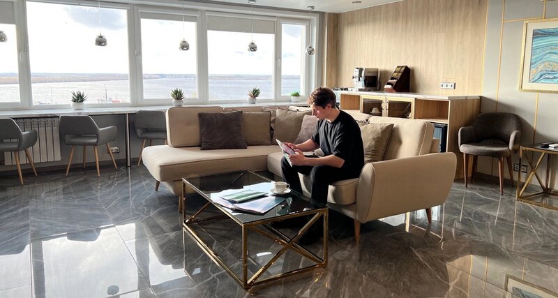Территория заботы и абсолютного комфорта. Бизнес этажи располагаются на 10, 11 и 12 этаже. Из окон номеров этого этажа открываются красивейшие виды на Северную Двину и центр города.