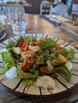 Стейк из палтуса обязательно нужно попробовать. Также очень вкусный теплый салат из морепродуктов!