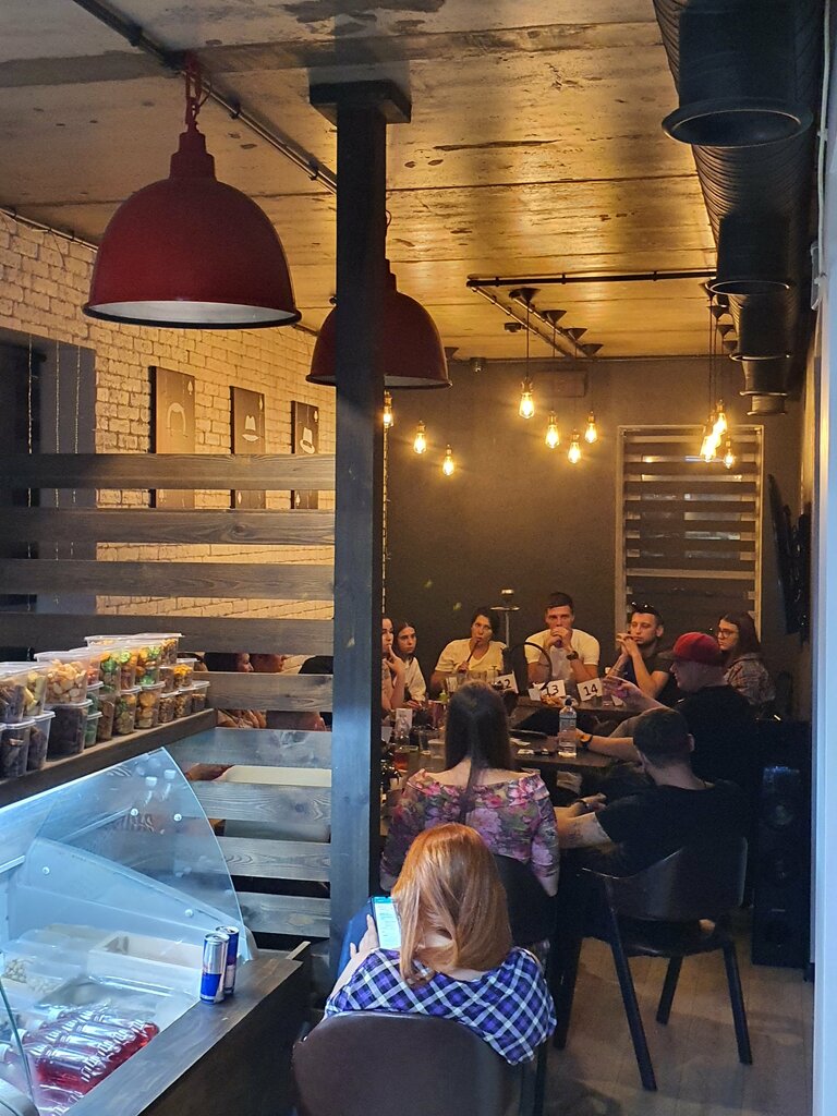 Отличный паб/бар. Очень приятное глазу место. Всё чисто и аккуратно. Около 7 столиков (есть 2-х местные и 4-х местные, расстояния не шибко большие меж друг другом). Имеются разношёрстные настольные игры. Хорошая закуска (от морепродуктов до жаренных пельменей). Цена приемлемая. В вечер пятницы или субботы - отличное место для отдыха небольшой компании друзей, загруженности минимально.