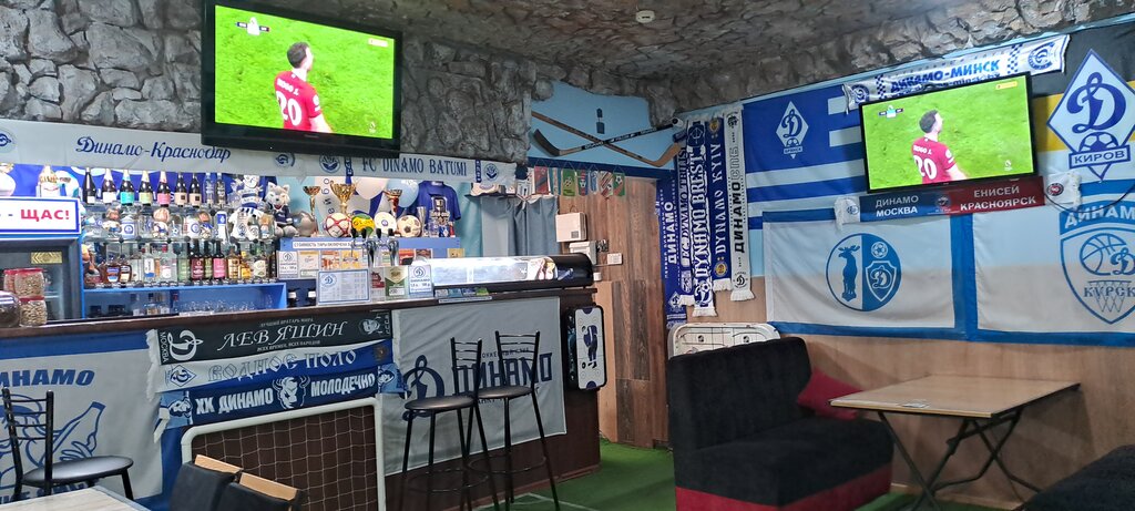 Кафе работает по типу самообслуживания, заказ у стойки заберёшь сам. На удивление чисто!Чистый туалет, есть жидкое мыло, (неплохое) и туалетная бумага. Большой выбор пива закусок к пиву, даже немного есть и крепкого алкоголя, даже элит. Атмосфера спортивного пивного бара. Всё в стиле "Динамо".