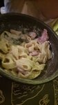 Поужинали. Из-за наплыва клиентов блюда подавали как прийдётся. Мне подали суп потом горячее потом салат. В меню накидали самых популярных блюд (цезарь, ролы, пицца, шашлык.). Позарившись на красивые картинки в меню, и в надежде, что не будет много народу, решили сходить на завтрак. Но в 12.15 оказалось что мы фатально опоздали... И повар ни как не может приготовить завтрак. Вот 15 минут назад мог, а сейчас не может. Справедливости ради должен сказать, что было вкусно, не очень вкусно, но вкусно, и официант старался как мог...
