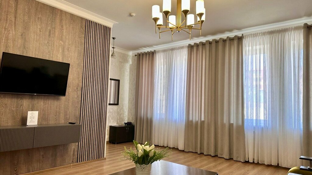 Прошло 2 дня с нашей поездки,а мы уже скучаем! Это был замечательный отдых в Дагестане. Нас было 20 человек. Отель нам очень понравился. Хорошее расположение, рядом магазины ,кафе... В отеле на первом этаже уютный ресторан вкусная еда , приветливый персонал. Администратор Жасмин большая умничка. Огромное ей спасибо за хорошее отношение и доброжелательность. Номера чистые,большие есть все необходимое полотенца, халаты, тапочки,фен, зубные щётки, чайник, стаканы,чашки. Мы остались довольны! Процветания вам и хороших, благодарных посетителей!