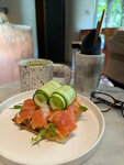 Матча очень хорошего качества, мне понравилась) плотная консистенция не слоями и не одно молоко в стакане, прям оценила) кружки красивые, но думала не удобные и тяжелые, но нет классные и легкие! Картофельные вафли с семгой и крем чиз просто пальчики оближешь, вкусно 🤤 девушка бариста очень приветливая, сервис на 5, здесь прям заземляешься, стильное местечко, послевкусие приятное!