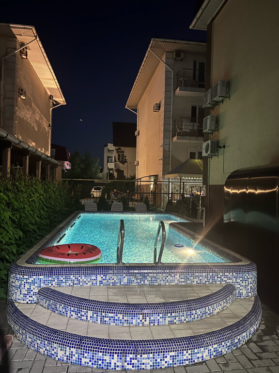 Номера комфортные, матрас сама сказка, а мне как беременной очень сложно угодить 🤣. Дополнительно место для ребёнка. Есть все в шаговой доступности. Чисто и уютно. Соблюдается порядок среди гостей в номерах, режим тишины, никто не кому не мешает. Телевизор работает , что хочешь посмотришь. Как каналы ТВ так и фильмы. И все это без Ютуба) Кондиционер работает. Хозяйка, молодец. Бассейн чистый, он идеально расположен, то с солнцем, то без. Вообщем я знаю куда ехать в следующем году 🌊🌊