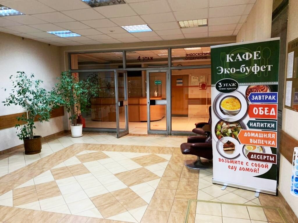 Никогда не думала, что в поликлинике может быть полноценная столовая с линией раздачи, где продают еду, которую тут же приготовили. Ассортимент приятно удивил и порадовал, а на сырники и пудинг надо еще постараться успеть. Еда как дома. Без всяких надоевших бургеров, роллов и всей остальной ерунды. Вкусные салаты и выбор хороший. А суп Гаспачо как в ресторане только цена в десятки ниже. Немного расстраивает маленький ассортимент кофе, зато напитки их собственного приготовления отличные, шиповник вне конкуренции. Спасибо большое