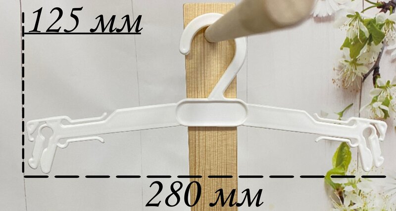Вешалка блузочная для платьев, блузок и нижнего белья белая с вращающимся крючком и с рельефной поверхностью плечиков с отверстиями для бретелек.