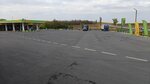 Хорошее место для ночёвки на фуре. Большая площадка, освещение, камеры. Стоянка платная, дают чеки. На АЗС в магазине всё дорого, ну, как на всех АЗС, но в крайнем случае можно купить продукты и перекусить. Есть чистые туалеты (4 кабинки). Интернета и связи у здания АЗС и на грузовой стоянке нет, но и то и другое есть около выезда (там, где флаги), встал там на ночь, интернета хватало даже на видео. Хорошее место отдыха.