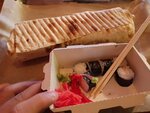 Суши и пицца вкусная. Нам понравилось очень. Правда относительно долго ждать доставку и приготовление может занять до 25 минут (если ждать на месте). Но, того стоит!