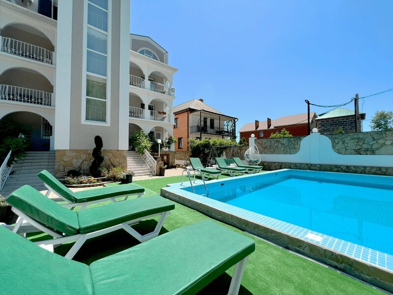 Хороший отель👌 Территория ухоженная чистая,ни травинки,ни листочка)есть детский уголок,есть лаунж зона где можно спокойно посидеть в прохладе с фоновой музыкой,так же есть столики на улице! Жили на последнем этаже,ну что было🤷(бронировали за 1.5 недели)номер очень чистый,нет не приятного запаха,приятно было находиться! По еде:сын брал пельмени и шашлык куриный очень вкусно.в основном кушали на пляже(все свежее и вкусное) До пляжа идти мин 10 спокойным шагом, набережной особо нет,но море чистое,были в будний день,людей достаточно было на пляже! обязательно берите кораллки с ними вход/выход из воды будет комфортным. Из минусов: Бассейн ледяной 🥶ребенок немного плавал и больше не захотел,выбор был отеля в большую степень из-за бассейна! Нет развлечения для детей,в отели были дети в возрасте от 7 лет и старше,заняться не чем,хотя если бы был теплый бассейн все были бы там((( В номере ребенок спал на раскладном кресле,даже наматрасник мягкий не помог,ему было не удобно и ещё подушка огромная на которой ему мега не удобно было спать. По итогу:в этом отеле спокойный и размеренный отдых.Детям будет скучно. А в целом очень даже неплохой отель!!!👌😊