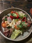 Брал бифштекс-5*, салаты с баклажаном-5*, салат с тунцом-5*, спагетти карбонара-4* ,коктейль барби-5*, ждали минут 10-15, обслуживани-5*, интерьер оригинальный, цены средние для таких заведений салат с тунцом и бифштекс-1500р