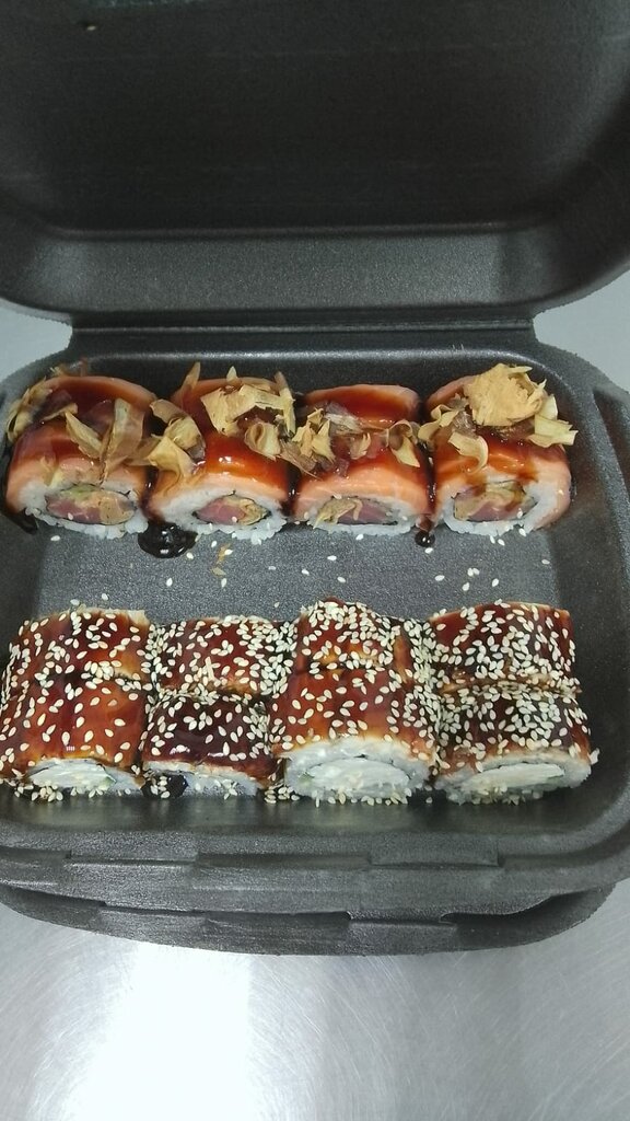 Роллы очень вкусные, очень большие, я нигде больше таких не ела, где очень много начинки и тонкий слой риса. Почему убрала 2 звезды, объясню. Во первых мне не доложили соус, во вторых не положили палочки, говорят что при уточнении заказа спрашивали, хотя я такого не припомню. Как вот, объясните мне пожалуйста, при заказе нескольких видов ролл, не положить палочек. И подруга тоже сказала, что при заказе не доложили соусы. Так что, заказывайте, очень вкусно, но проверяйте заказ прежде чем уехать с места самовывоза.