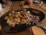 Классный ресторан шашлык офигенный. Очень сочный брала шею свиную оливье с ростбифом восхитительный много ростбифа салат нарезан прекрасно. Антураж соответсвующий. Картошечка с укропом и чесноком нечто великолепное. Очень ароматные блюда и отличные специи. Колбаски из косули с капустой тоже хорошие